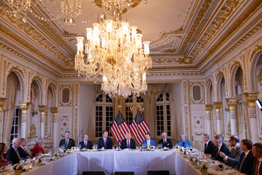 O presidente eleito Donald Trump se reúne com governadores republicanos no Mar-a-Lago Club,em Palm Beach,Flórida — Foto: Scott Olson/Getty Images/AFP