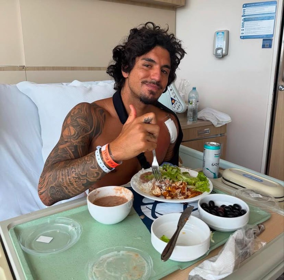 Segundo o site ge,Medina lesionou o tendão do músculo peitoral maior do ombro esquerdo ao executar uma manobra aérea.