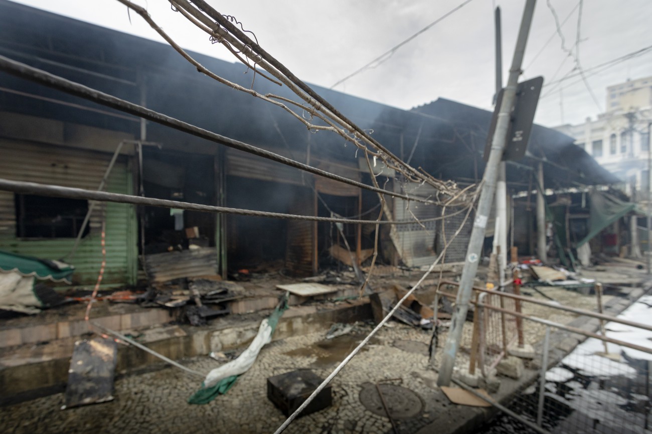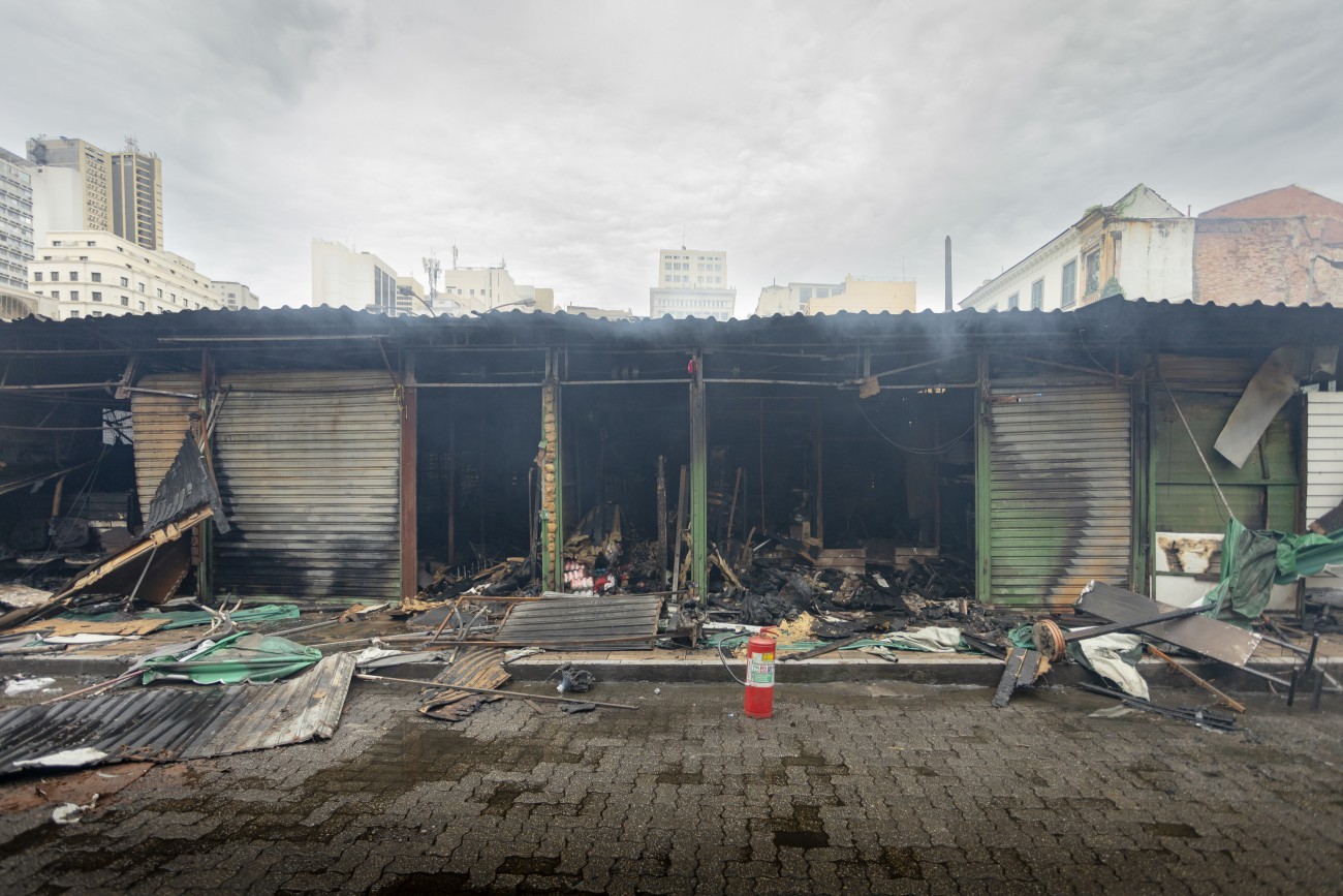 Incêndio destruiu parte do Camelódromo da Uruguaiana neste domingo: local já passou por outros sinistros semelhantes — Foto: Leo Martins