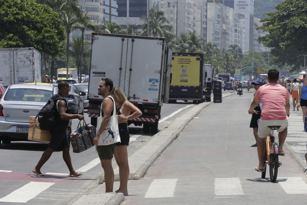 Tumulto no trânsito na orla de Copacabana provocado pela carga e descarga irregular,no último dia 4 — Foto: Domingos Peixoto/04-01-2025