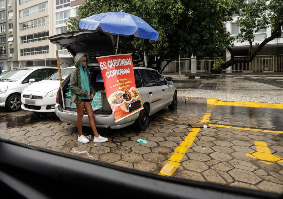 A venda de quentinhas também é feita na mala de carros estacionados nas vagas. Entre 11h e 13h da última quinta-feira havia pelo menos 12 ao longo da Atlântica,oferecendo marmitas por preços que vão de R$ 11,99 a R$ 15. Nos cartazes,vendedores informam que aceitam dinheiro,cartão e Pix. E há quem ofereça comida por R$ 15,incluindo uma bebida.