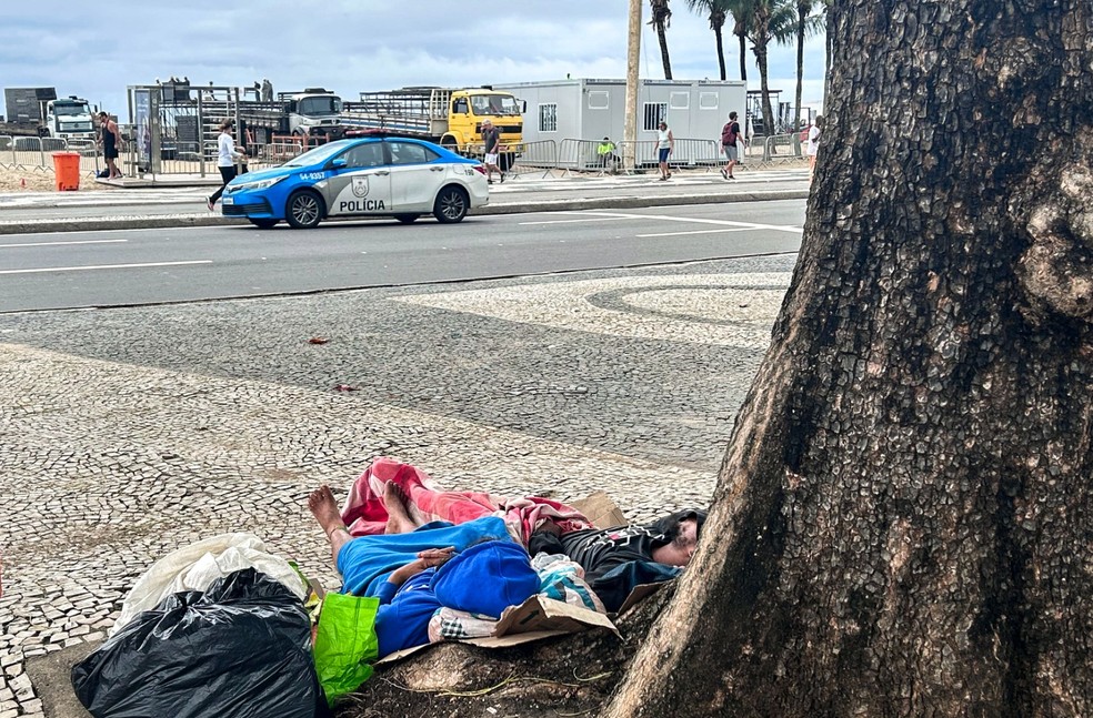 Moradores de rua na orla de Copacabana — Foto: Gabriel de Paiva/Agência O Globo