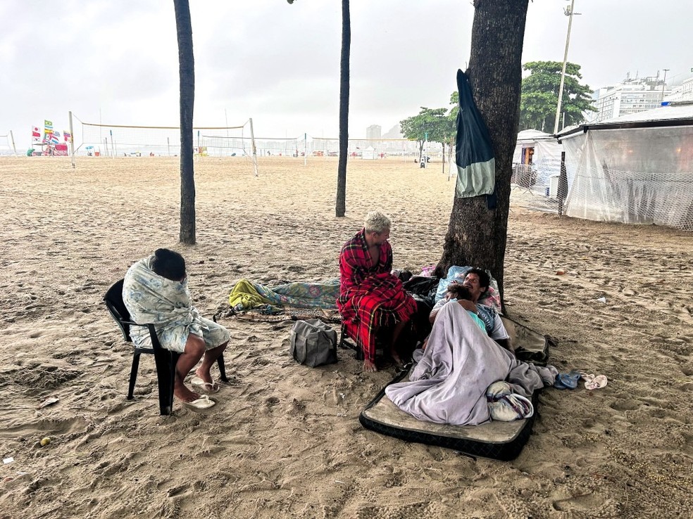 Moradores de rua são mais uma questão insolúvel. Trechos com árvores e laterais de postos de salvamento são pontos preferidos por quem busca um canto para ficar,com barracas ou ao relento. Andreza Maria da Silva,de 48 anos,conta que está dormindo na areia,perto do Copacabana Palace,desde o Natal,quando saiu da Caxias,onde também vivia na rua.