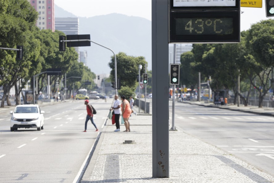 Termômetro marca 43ºC na Avenida Presidente Vargas,no Centro do Rio — Foto: Custódio Coimbra