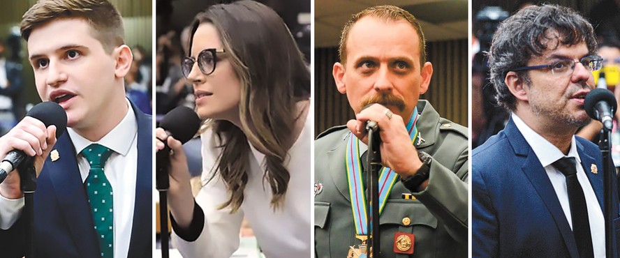 Lucas Pavanato (PL),Zoe Martinez (PL),Sargento Nantes (PP) e Adrilles Jorge (União) estão entre os bolsonaristas novatos na Câmara: eles devem tentar puxar Nunes mais para a direita — Foto: Divulgação
