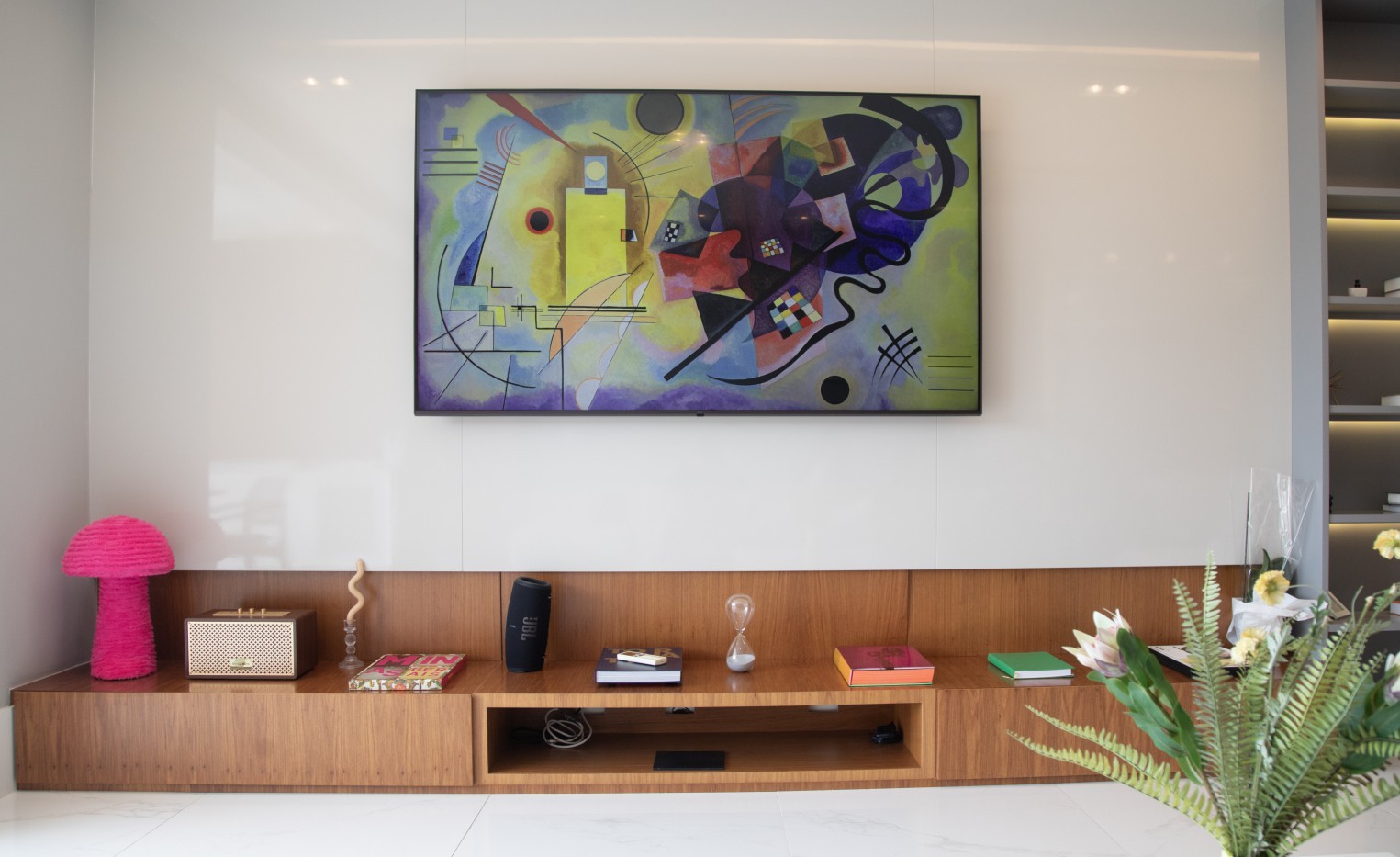 A atriz Vitória Strada usa presentes dos fãs na decoração de seu apartamento — Foto: Ana Branco/Agência O Globo