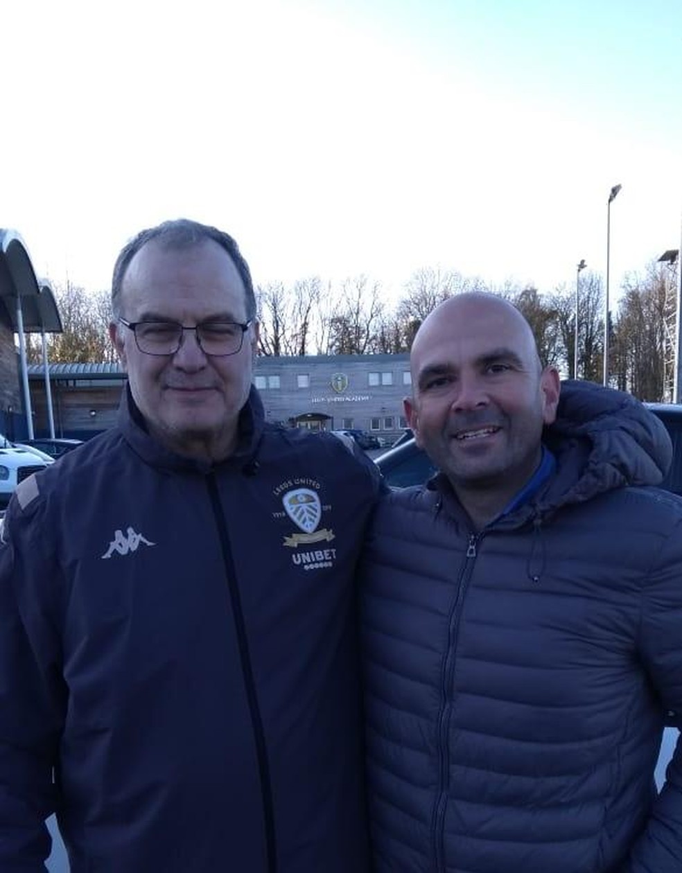 Carlos Leiria e Marcelo Bielsa,em encontro em Leeds,na Inglaterra — Foto: Arquivo Pessoal