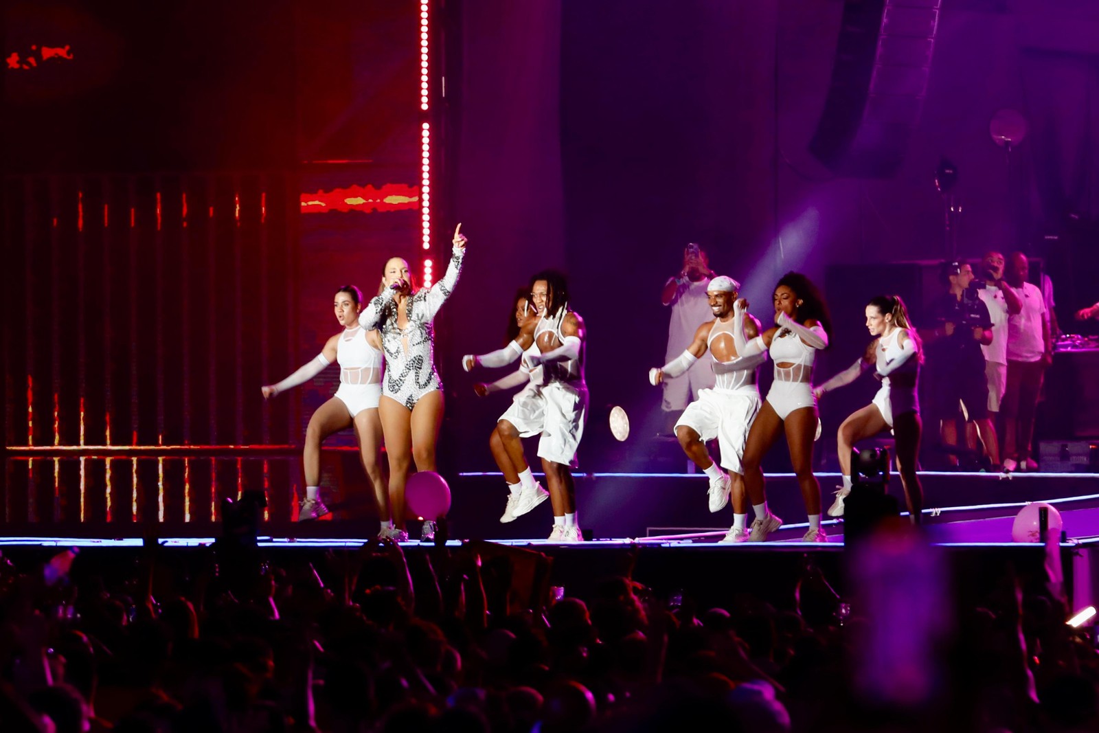 Anitta e dançarinos com rostos cobertos durante apresentação no Palco Copacabana Rio no Réveillon 2025 — Foto: Divulgação/Alexandre Macieira | Riotur