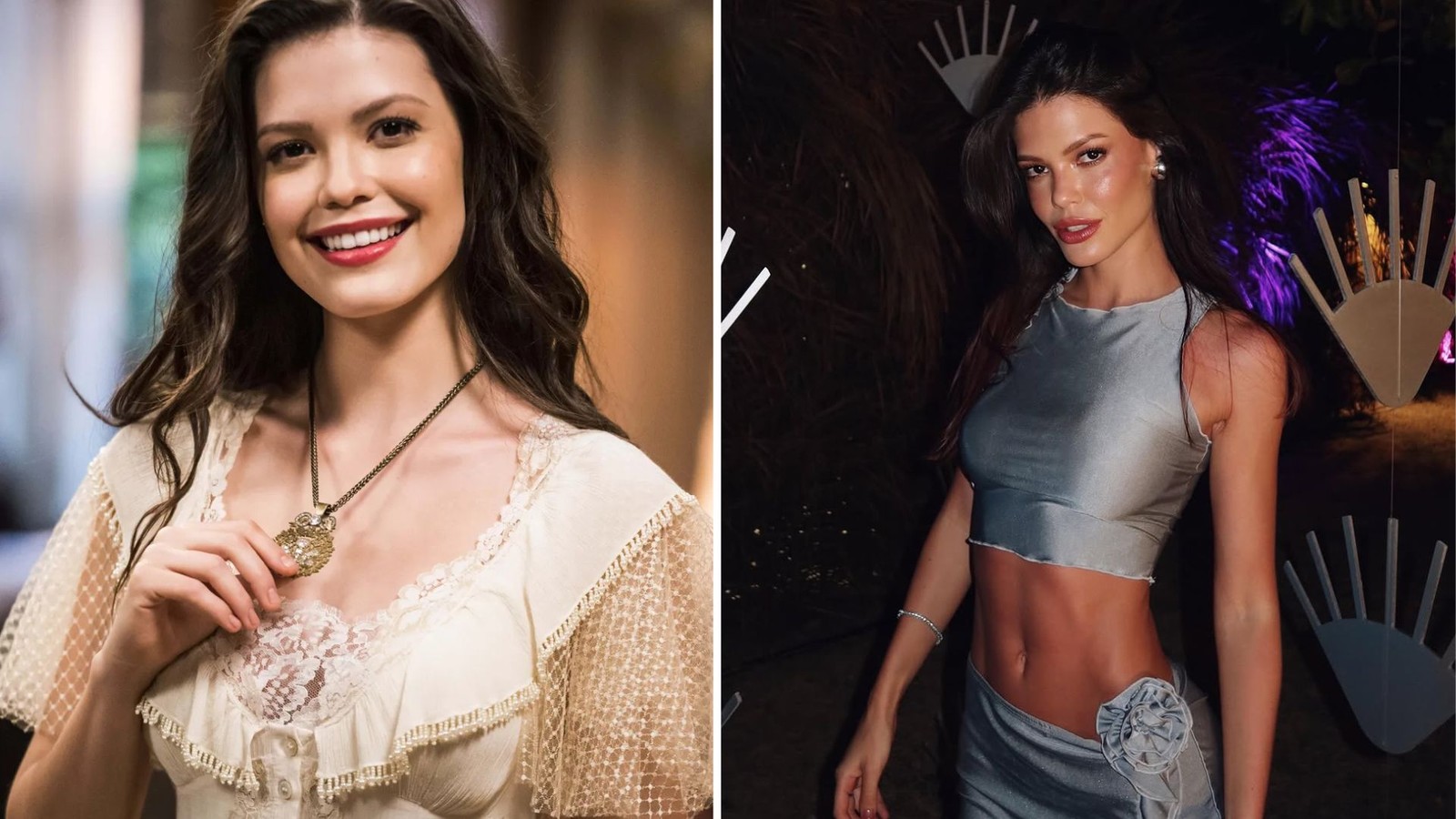 Vitória Strada também não realiza procedimentos invasivos em seu corpo. A atriz realiza apenas criofrequência,que remodela o corpo e reduz medidas — Foto: TV Globo e Reprodução/Instagram.