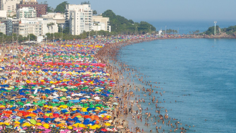 Praia de Copacabana é uma das mais procuradas em dia de calorão — Foto: Fabiano Rocha / Agência O Globo