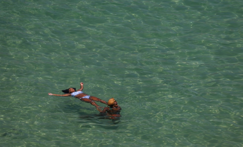 Banhistas se refrescam na praia do Arpoador — Foto: Gabriel de Paiva