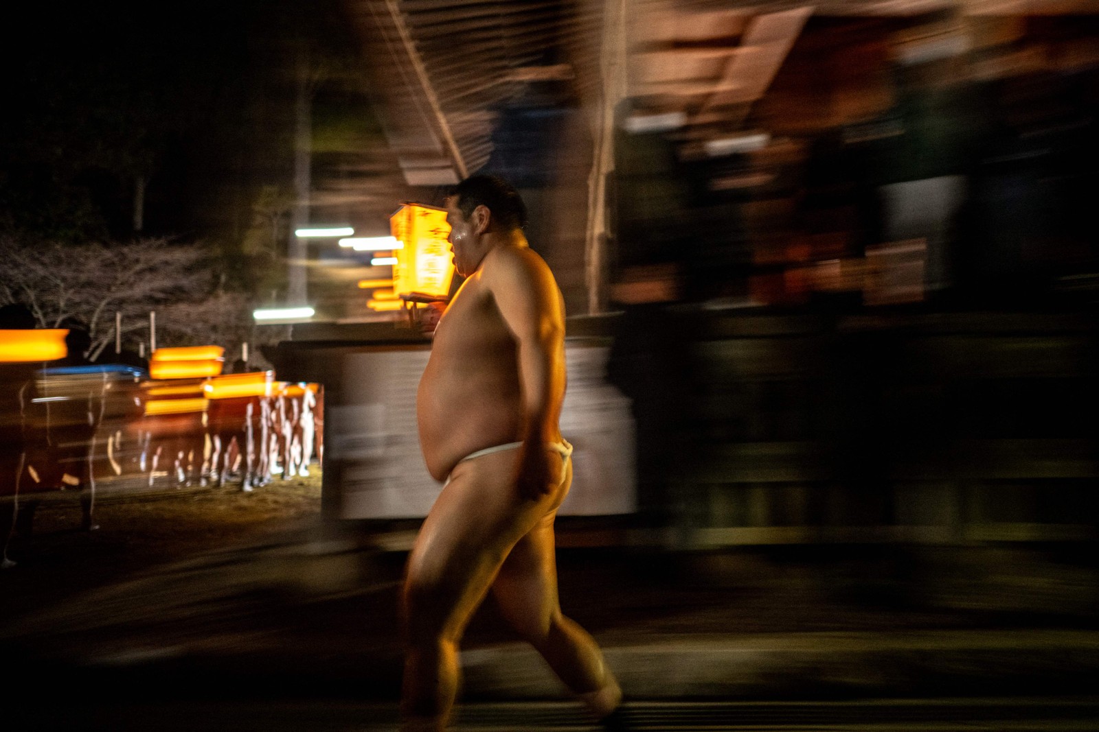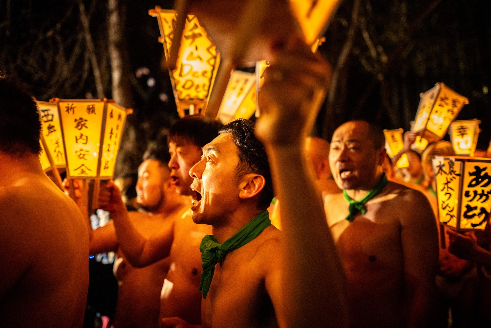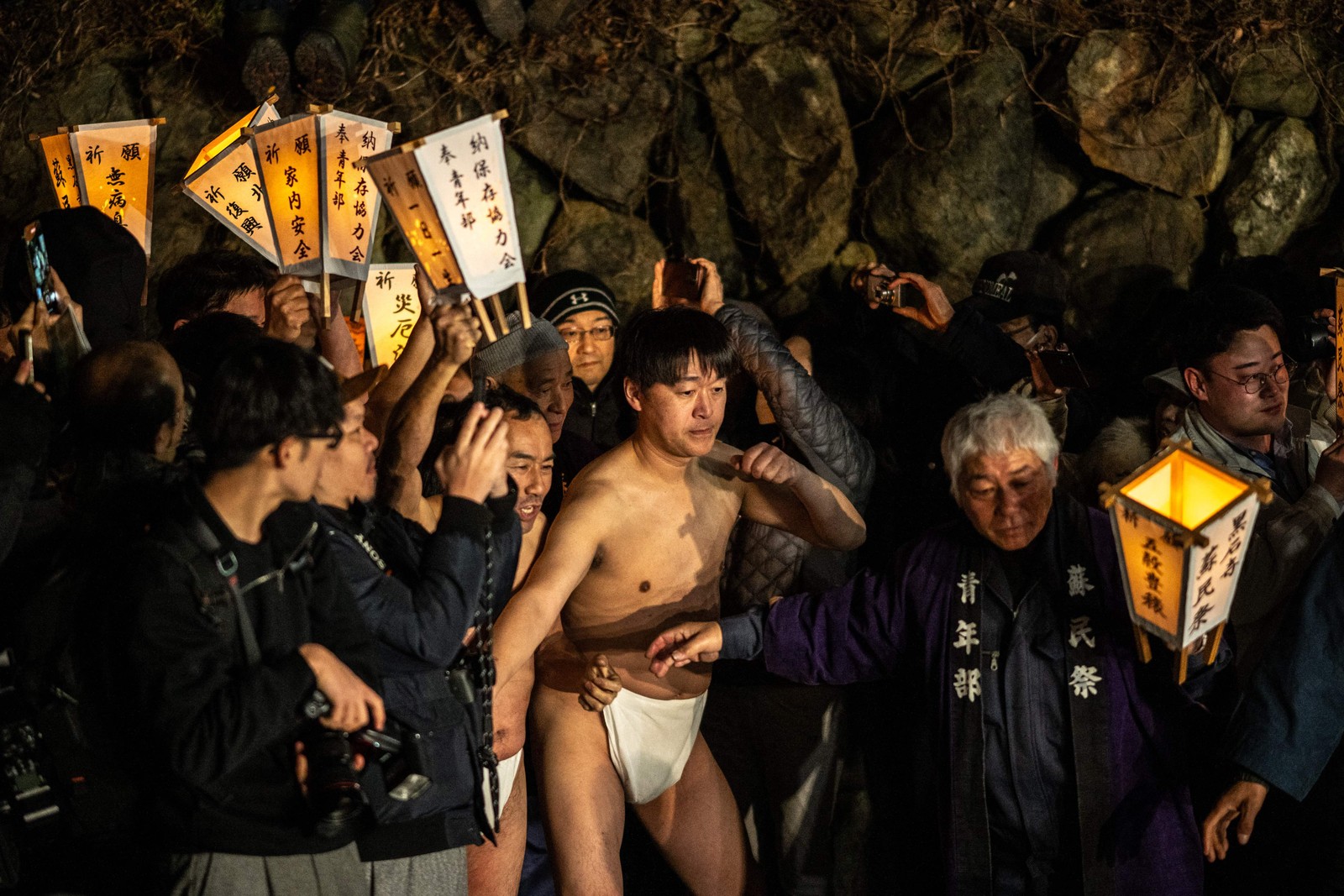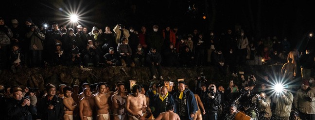 Envelhecimento da população faz Japão encerrar festival milenar Sominsai,com homens semi-nus — Foto: Philip Fong/AFP