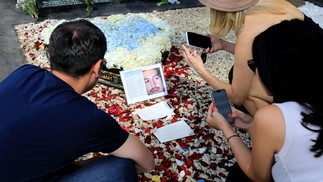 Turistas visitam o túmulo de Pablo Escobar em Itagui,próximo a Medellin,na Colômbia — Foto: JAIME SALDARRIAGA / AFP