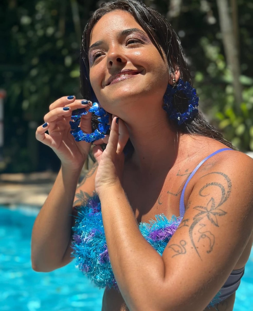 — Comprei esse brinco especialmente para este bloco. Escolhi essas cores porque sinto que a galera está numa vibe mais neon,mais iluminada,trazendo mais vida e alegria para o nosso carnaval — conta.