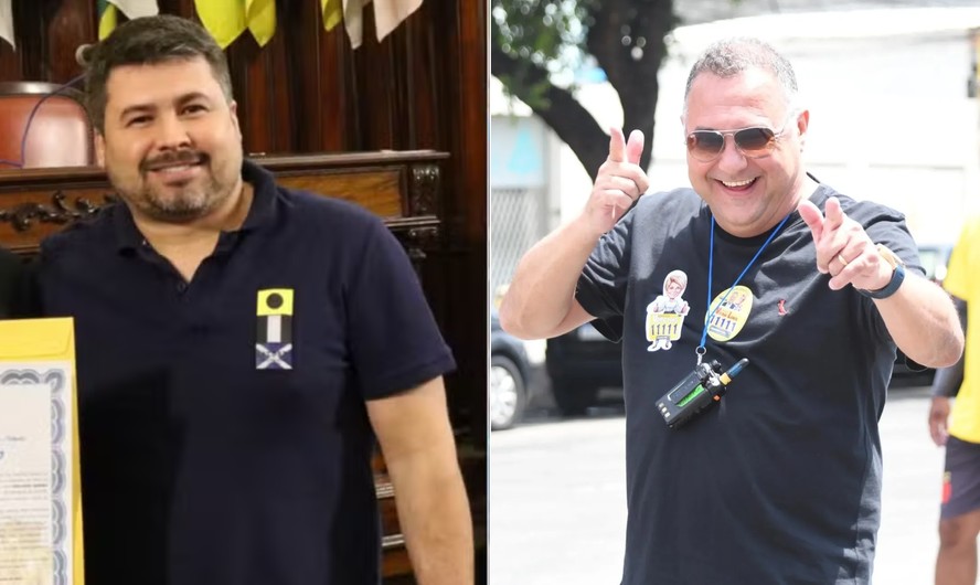 À esquerda,o policial civil Raphael Ferreira Gedeão e o empresário e assessor parlamentar Marcelo dos Anjos Abitan da Silva — Foto: Reprodução