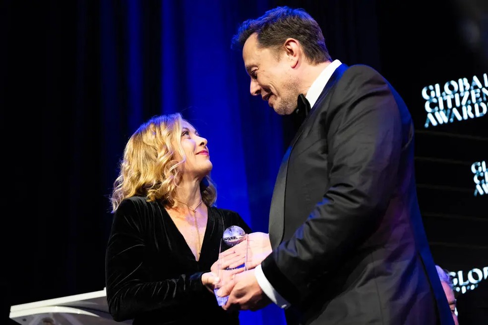 Musk e a primeira-ministra Giorgia Meloni,da Itália — Foto: Graham Dickie/The New York Times