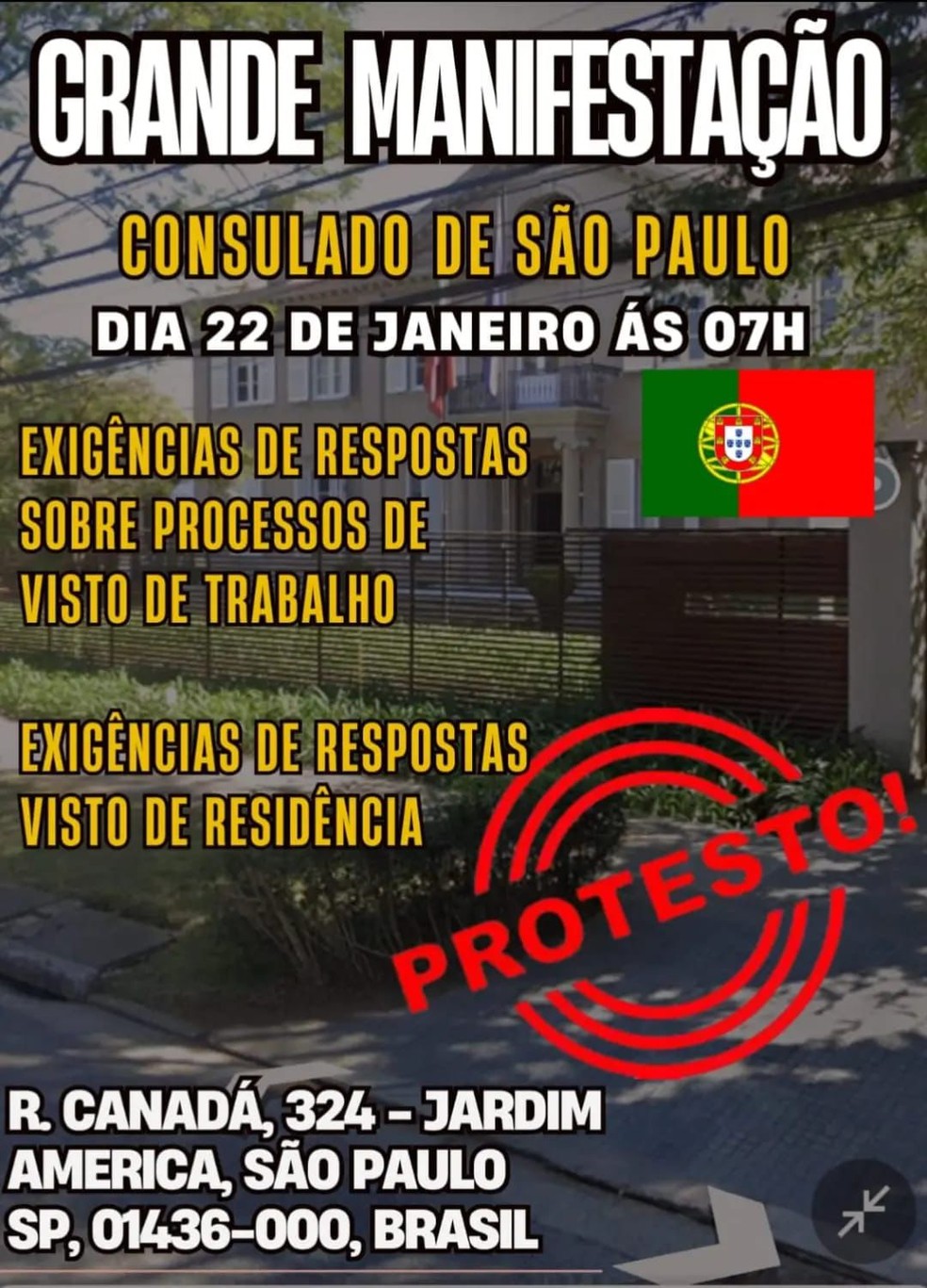 Brasileiros programaram para hoje de manhã protestos simultâneos em frente aos consulados de Portugal em Belo Horizonte,Rio,Salvador e São Paulo. Os vistos para o país têm demorado oito meses e eles reivindicam mais agilidade e transparência nos processos.