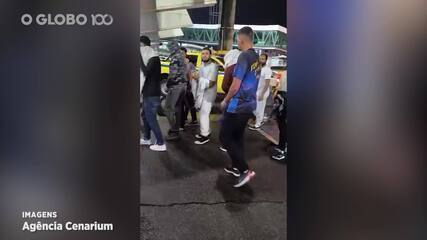 Reprodução de vídeo mostra deportados dos EUA chegando algemados e com pés acorrentados ao Brasil — Foto: Agência Cenarium