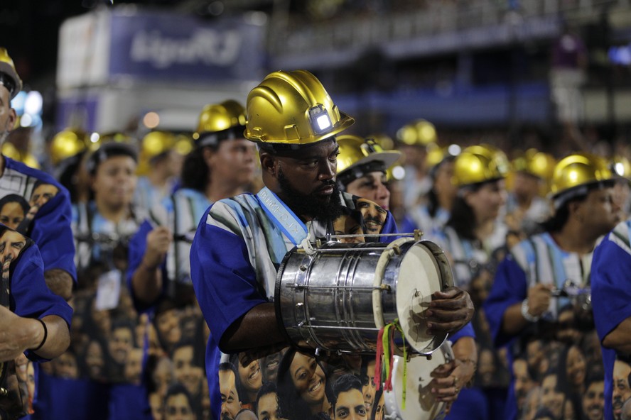 Série Ouro: ritmistas da Em Cima da Hora,uma das escolas presentes nos ensaios técnicos de 2025 — Foto: Alexandre Cassiano / 10-02-2024