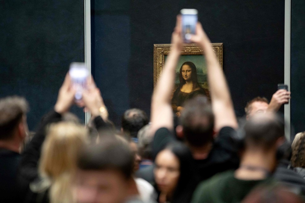 Visitantes tiram fotos da 'Mona Lisa' no Museu do Louvre — Foto: AFP