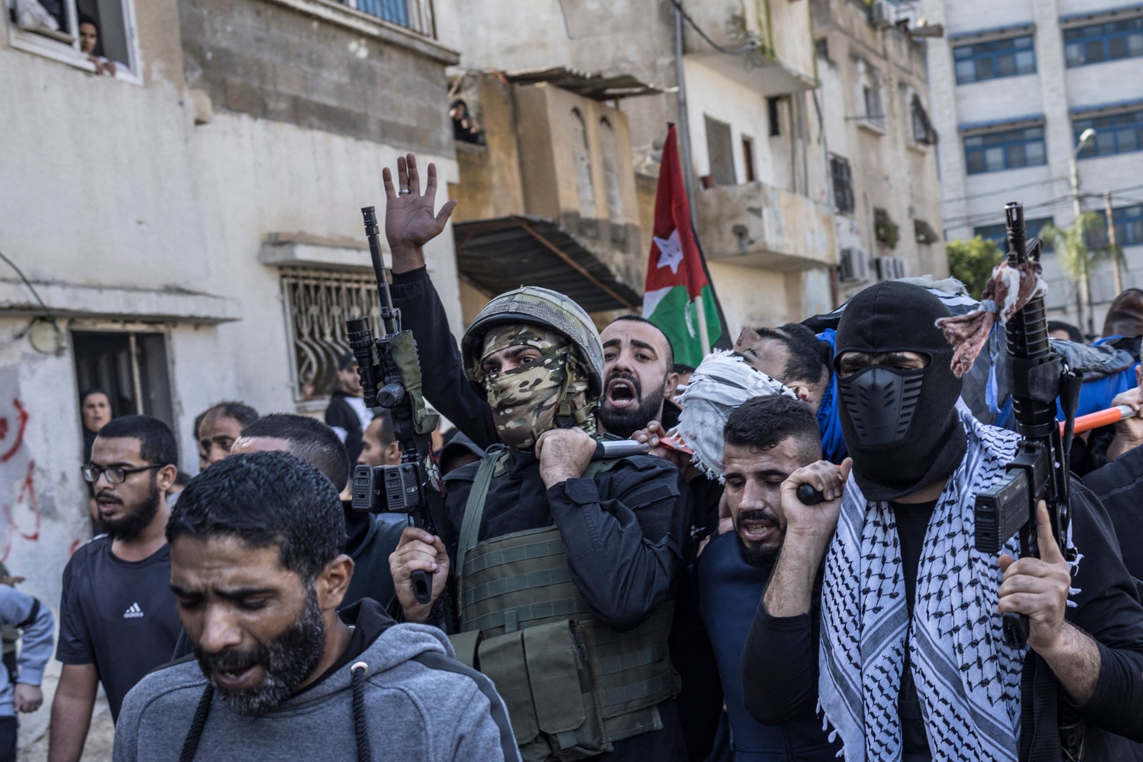 Enlutados carregam o corpo de um palestino morto durante uma operação militar do exército israelense em Tulkarem,durante seu funeral em 19 de janeiro. O exército israelense realizou ataques em diferentes setores da Cisjordânia ocupada,onde o Ministério da Saúde da Autoridade Palestina disse que pelo menos seis pessoas foram mortas — Foto: MARCO LONGARI / AFP