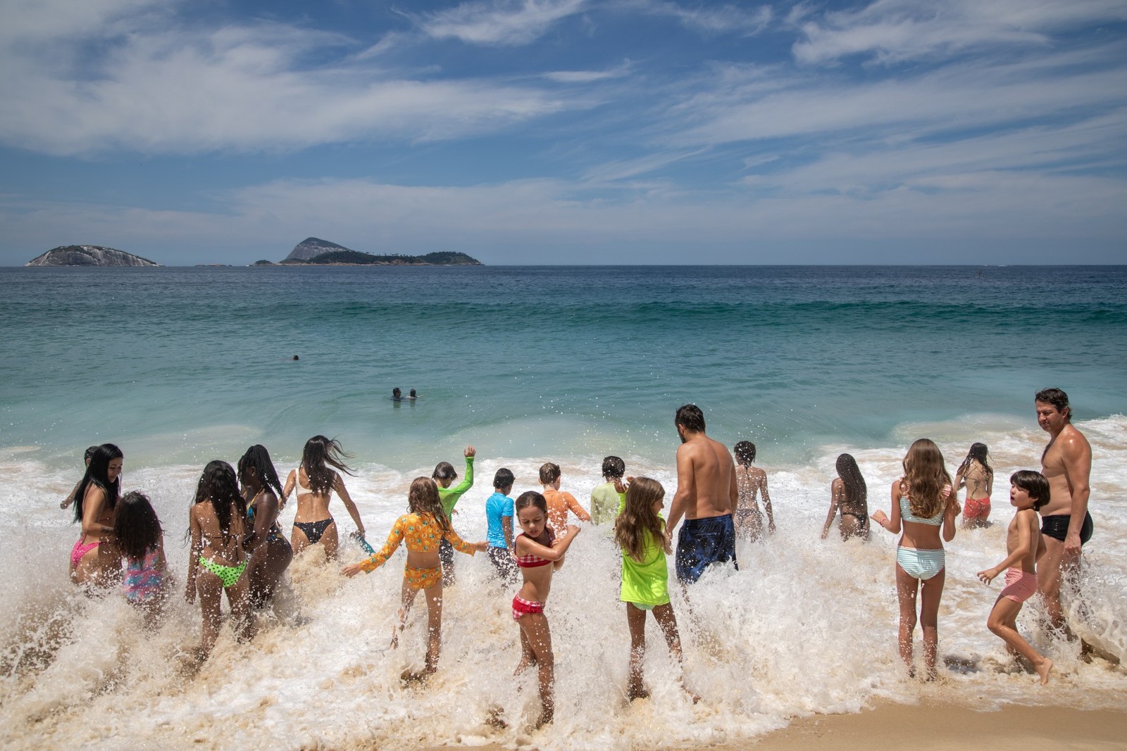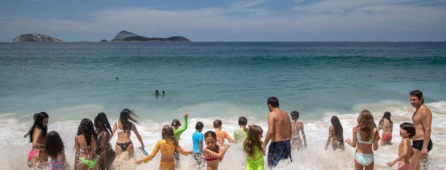 Em Ipanema,crianças lotam beira do mar,com ondas que pedem atenção dos banhistas — Foto: Ana Branco/Agência O Globo