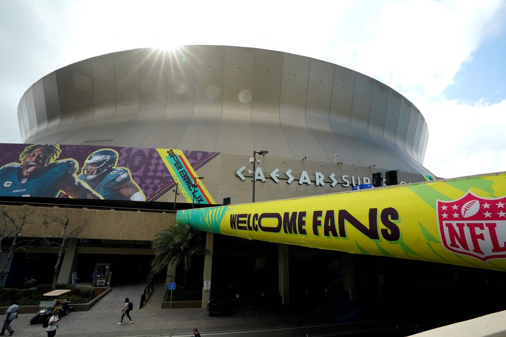 Caesars Superdome,palco do Super Bowl,a final da NFL,entre Kansas City Chiefs e Philadelphia Eagles — Foto: TIMOTHY A. CLARY / AFP