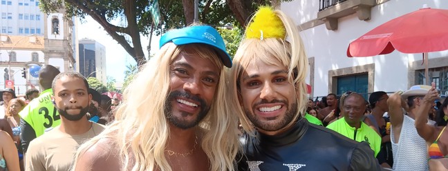 Os atores Samuel de Assis e Amaury Lorenzo curtiram o bloco no Centro do Rio — Foto: Ana Clara Veloso