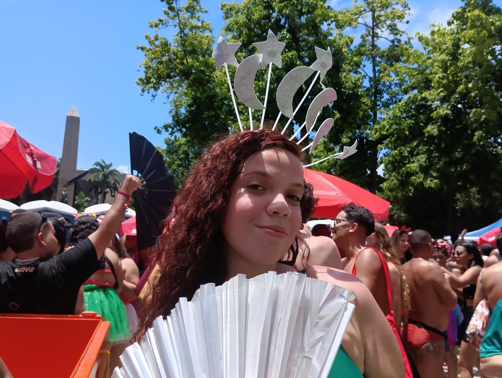 — Meu namorado foi DJ da festa dela e me deu. Eu amei. O leque tem ganhado representatividade na nossa comunidade,além de ajudar no calor — avaliou,contando que mais fez para lidar com as altas temperaturas: — Tomei banho de protetor solar e muita água hoje.