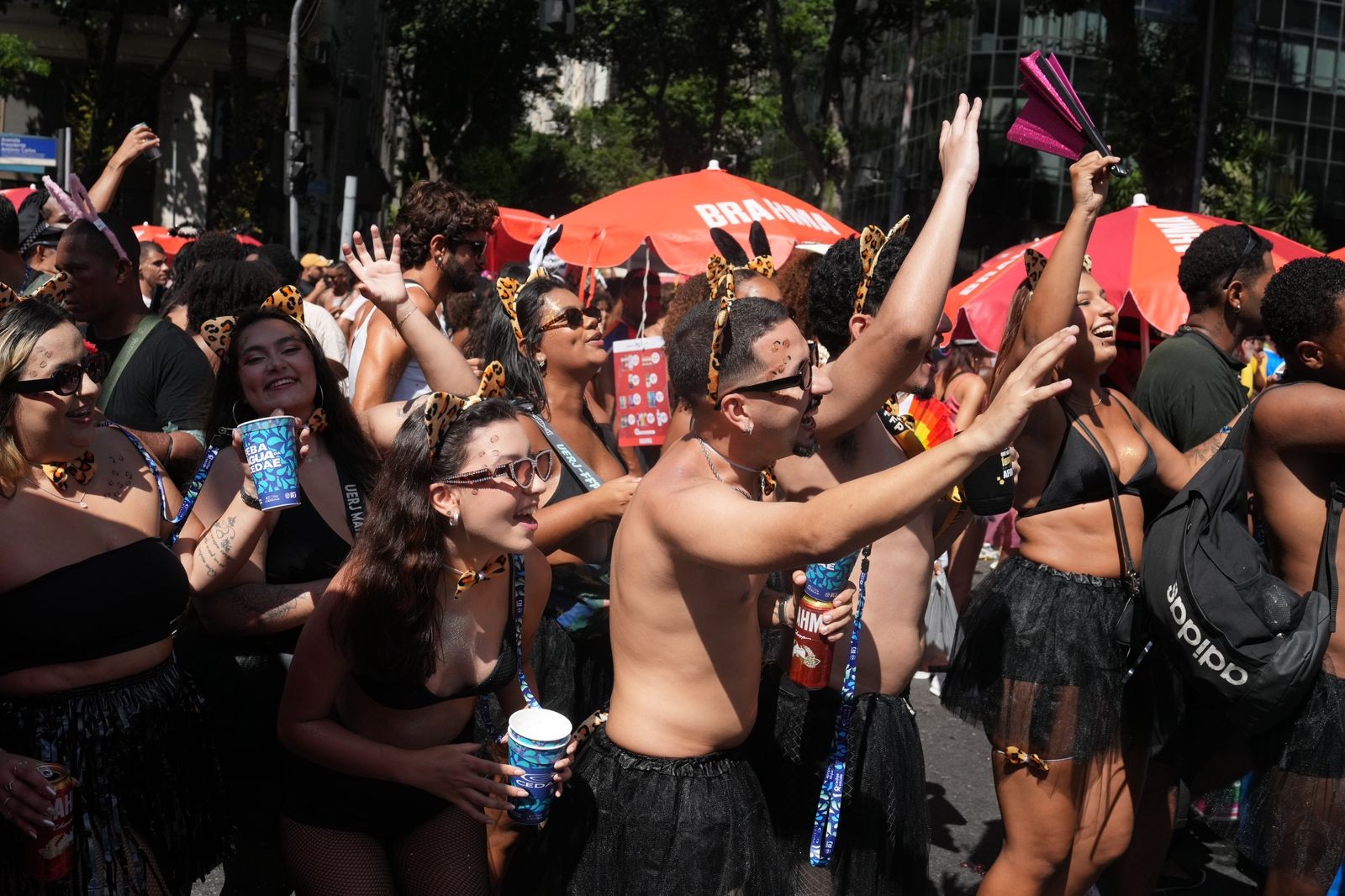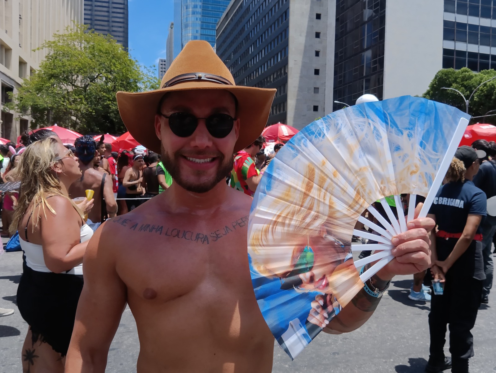 Além de serem se tornado um símbolo pela comunidade LGBTQIAPN+,os adereços ajudavam a afastar o calor. Com temperatura prevista de até 35º graus na cidade,os foliões também contaram com eventuais lançamentos de água da Cedae,para refrescar. E foram lembrados por Pabllo da importância de beberem água para aguentar o agito.