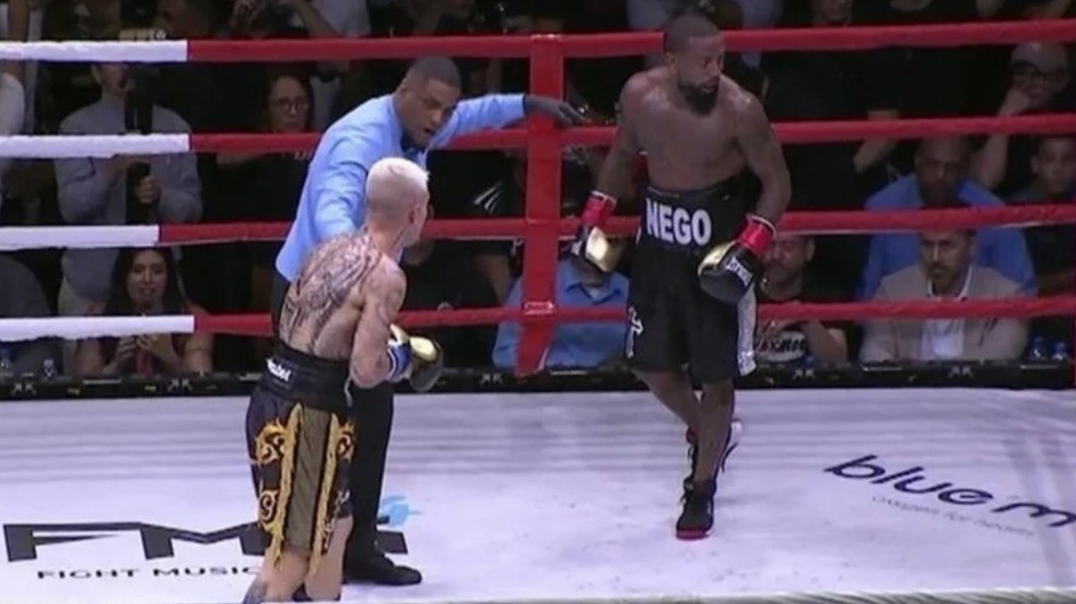 Resultado: o cantor resolveu a briga com Nego,derrubando-o no terceiro round.