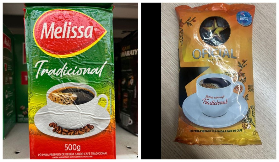 Entre os “café fakes” encontrados está a marca Oficial do Brasil. Em seu rótulo,o produto é descrito como “bebida sabor café” e “pó para preparo de bebida à base de café”. Outro exemplo é o Melissa,que tem nome e embalagem semelhantes a uma marca conhecida,a Melitta.