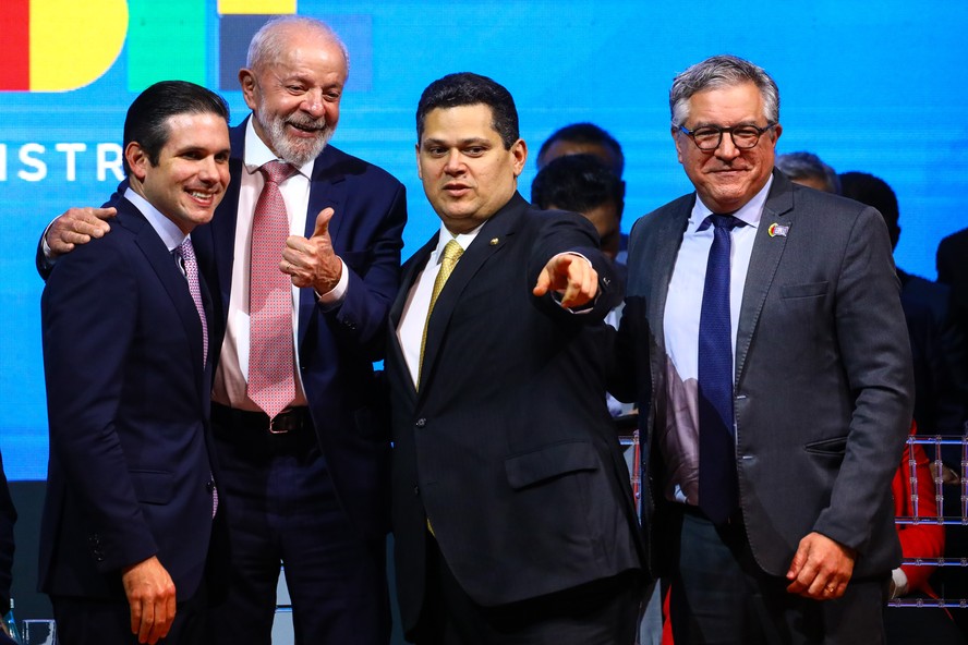 Presidente Lula,Hugo Motta,Davi Alcolumbre e Alexandre Padilha. — Foto: Brenno Carvalho / Agência O Globo