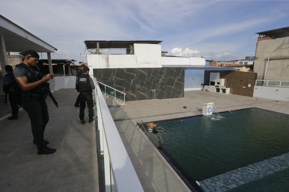 Piscina,área de lazer e Estrela de Davi: polícia chega à mansão do traficante Peixão; veja imagens
