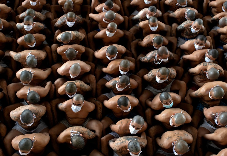 Detentos no maior centro penitenciário da América,situado em El Salvador — Foto: Marvin RECINOS / AFP