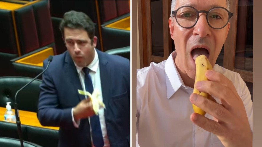 O vídeo em que o governador de Minas Gerais,Romeu Zema (Novo),come uma banana com casca para criticar a alta dos preços dos alimentos gerou críticas de deputados estaduais do Partido Liberal (PL),que até semana passada faziam parte de sua base de governo. A atitude de Zema nas redes sociais fez com que Caporezzo levasse uma banana para o plenário.