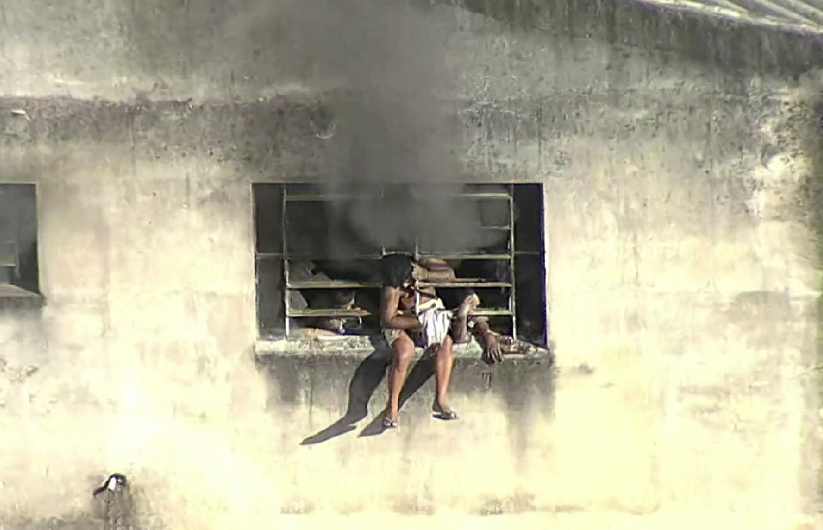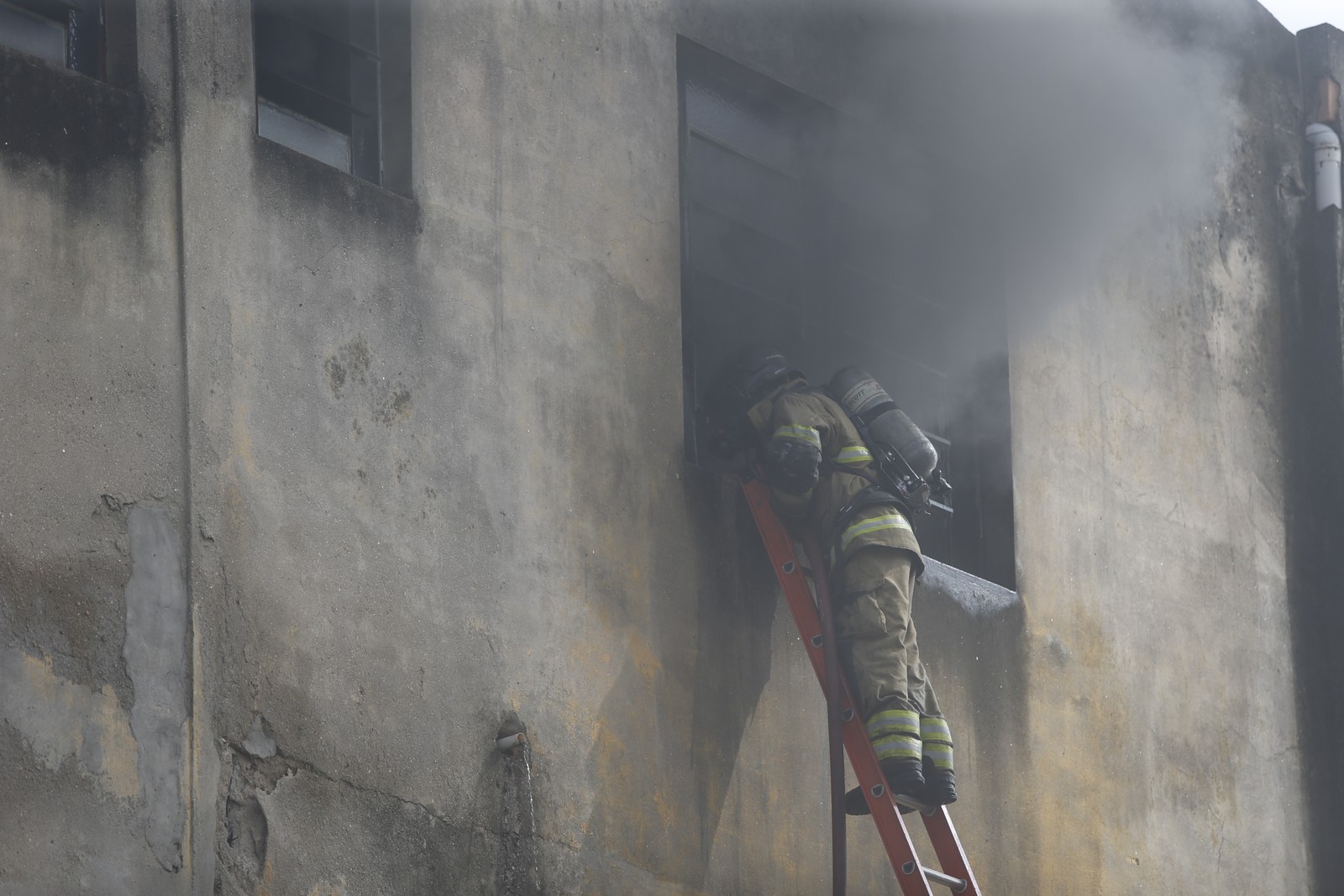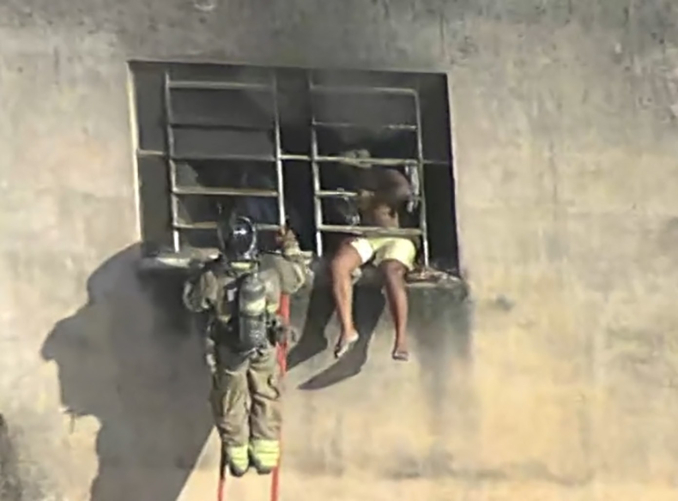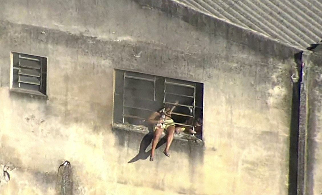 Vítimas de incêndio pedem socorro da janela da confecção de roupas em Ramos — Foto: Reprodução