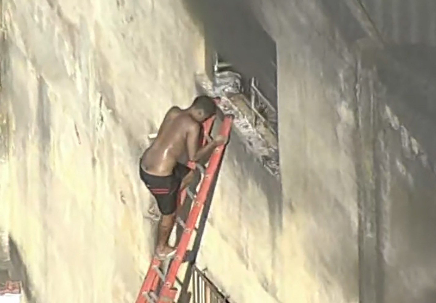 Vítima em desespero durante incêndio em confecção em Ramos — Foto: Reprodução TV Globo