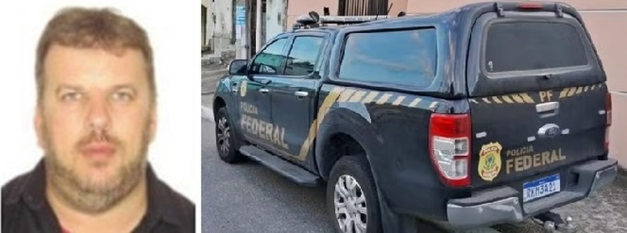 Cliver André Fiegenbaum e viatura da PF durante operação desta quinta-feira — Foto: Fotos de Reprodução/Divulgação