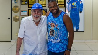 O cineasta Cacá Diegues e o carnavalesco João Vitor Araújo — Foto: Eduardo Hollanda