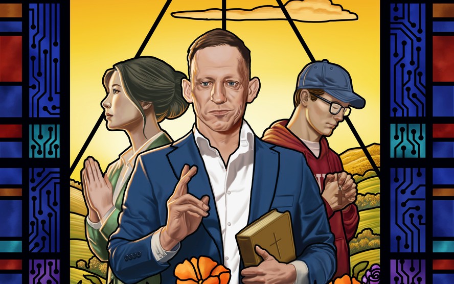 Em entrevistas recentes,ele mencionou profecias bíblicas para alertar sobre um "Anticristo",que,segundo ele,prometerá segurança contra ameaças existenciais,como inteligência artificial e guerra nuclear,mas trará algo muito pior: um governo mundial único. Procurado pela reportagem,Thiel recusou pedidos de entrevista via Stephens. Seu porta-voz não respondeu a um e-mail.