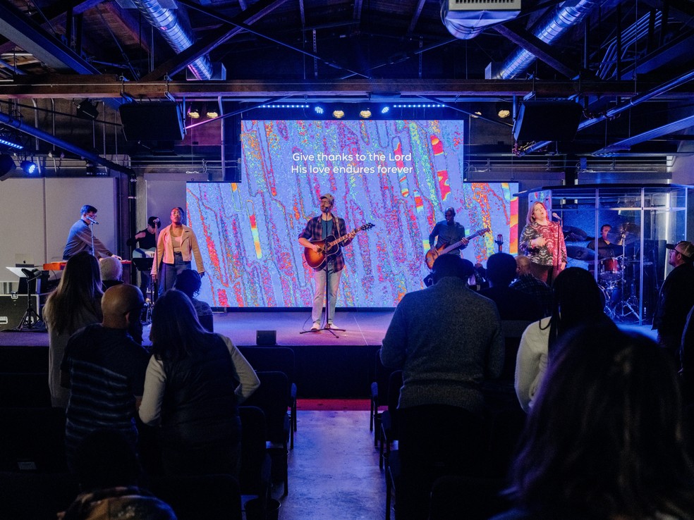Música e culto na Epic Church,que Michelle Stephens,fundadora do ACTS 17,frequentam há anos,em São Francisco — Foto: Aaron Wojack/The New York Times