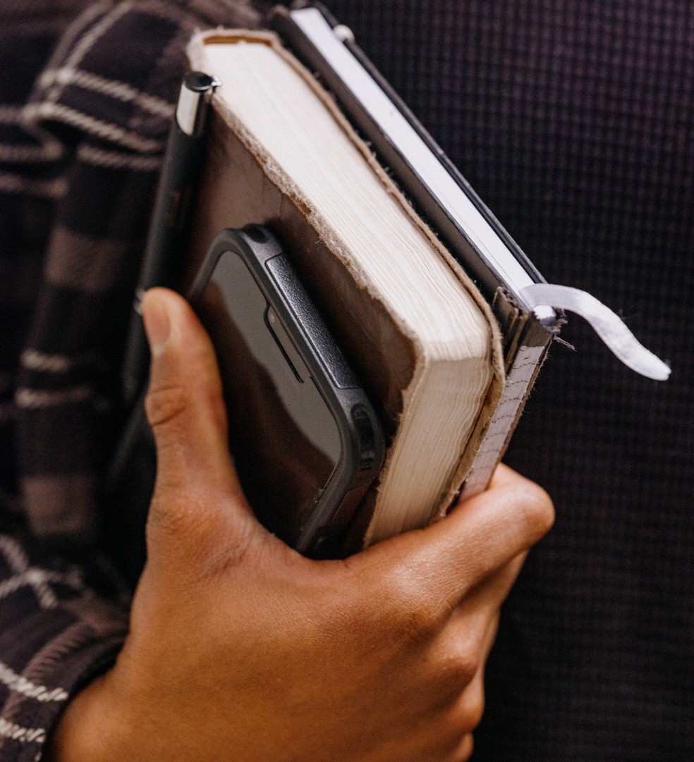 Na Epic Church,fiel segura a Bíblia e o celular — Foto: Aaron Wojack/The New York Times