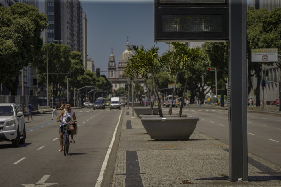 Termômetro na Av. Presidente Vargas marca 47 graus — Foto: Domingos Peixoto / Agência O Globo