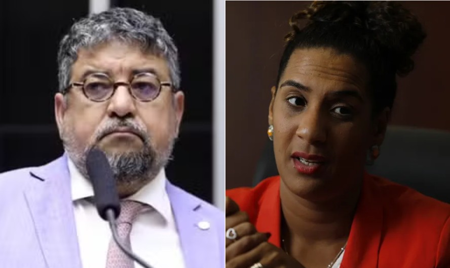 Washington Quaquá,vice-presidente do PT,e a ministra Anielle Franco — Foto: Zeca Ribeiro/Câmara dos Deputados/28-02-2024 e Cristiano Mariz/Agência O Globo