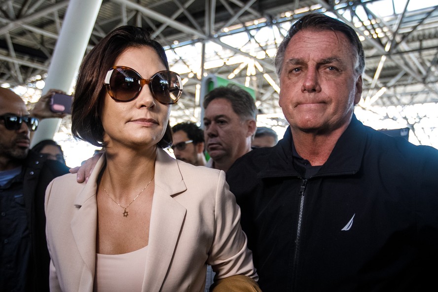 Jair Bolsonaro acompanha ao aeroporto de Brasília Michelle Bolsonaro que embarca para a posse do novo presidente dos Estados Unidos,Donald Trump. — Foto: Brenno Carvalho / Agência O Globo