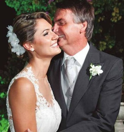Michelle no casamento com Bolsonaro,em 2013 — Foto: Reprodução/Aszmann/Revista Festejar Noivas RJ