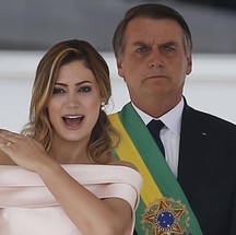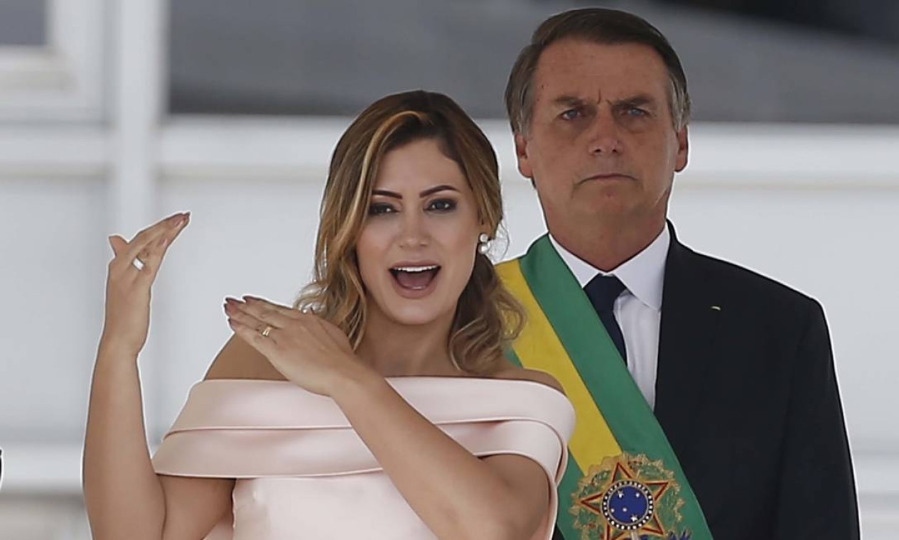 Na cerimônia de posse,a primeira-dama,Michelle Bolsonaro,chamou a atenção ao fazer um discurso em libras no parlatório,antes de Bolsonaro — Foto: Jorge William / Agência O Globo