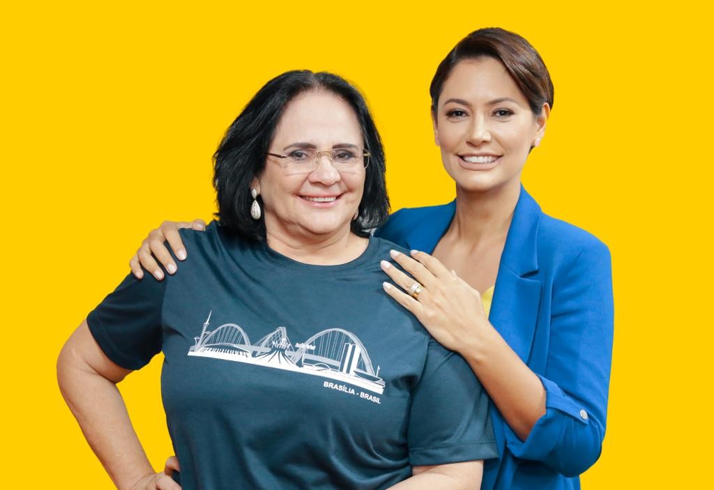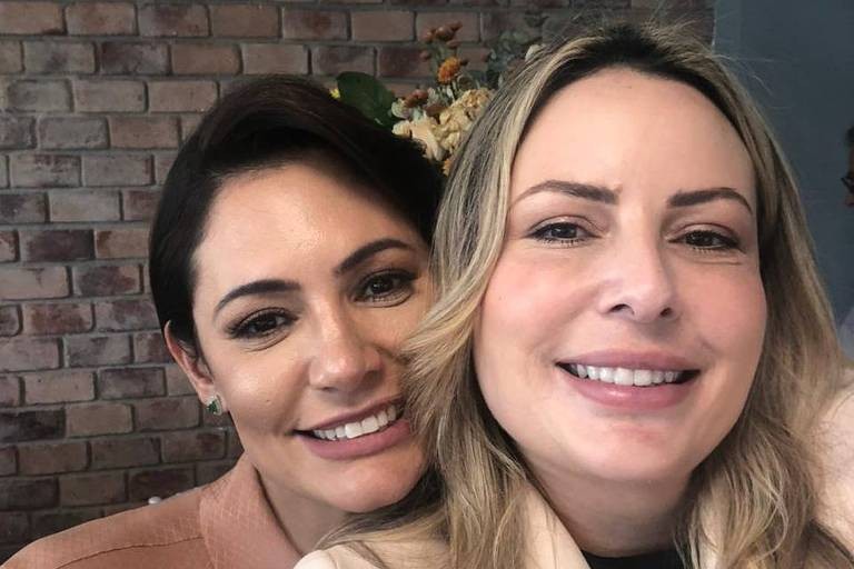 Michelle Bolsonaro com a mulher do Guilherme de Pádua,assassino da Daniella Perez — Foto: Reprodução/Em Off