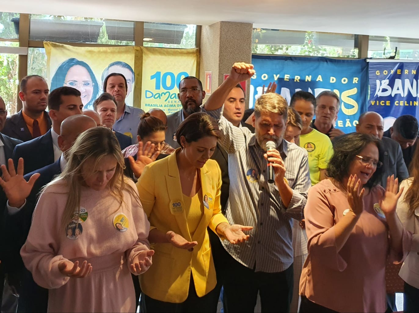 Michelle Bolsonaro em evento com pastores em apoio à candidatura da ex-ministra Damares Alves — Foto: Jussara Soares/Agência O GLOBO